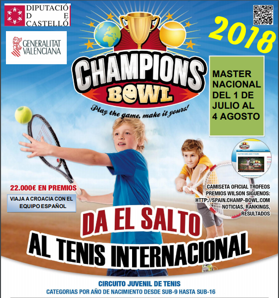 Estimados Socios, tenemos el placer de comunicaros que a partir del sábado 26 de mayo, y durante varios fines de semana, vamos a contar con una de las pruebas del Circuito a nivel Nacional, Champions Bowl. Este torneo es clasificatorio para el Master que se celebra en Madrid en Ciudad de La Raqueta la primera semana de agosto.