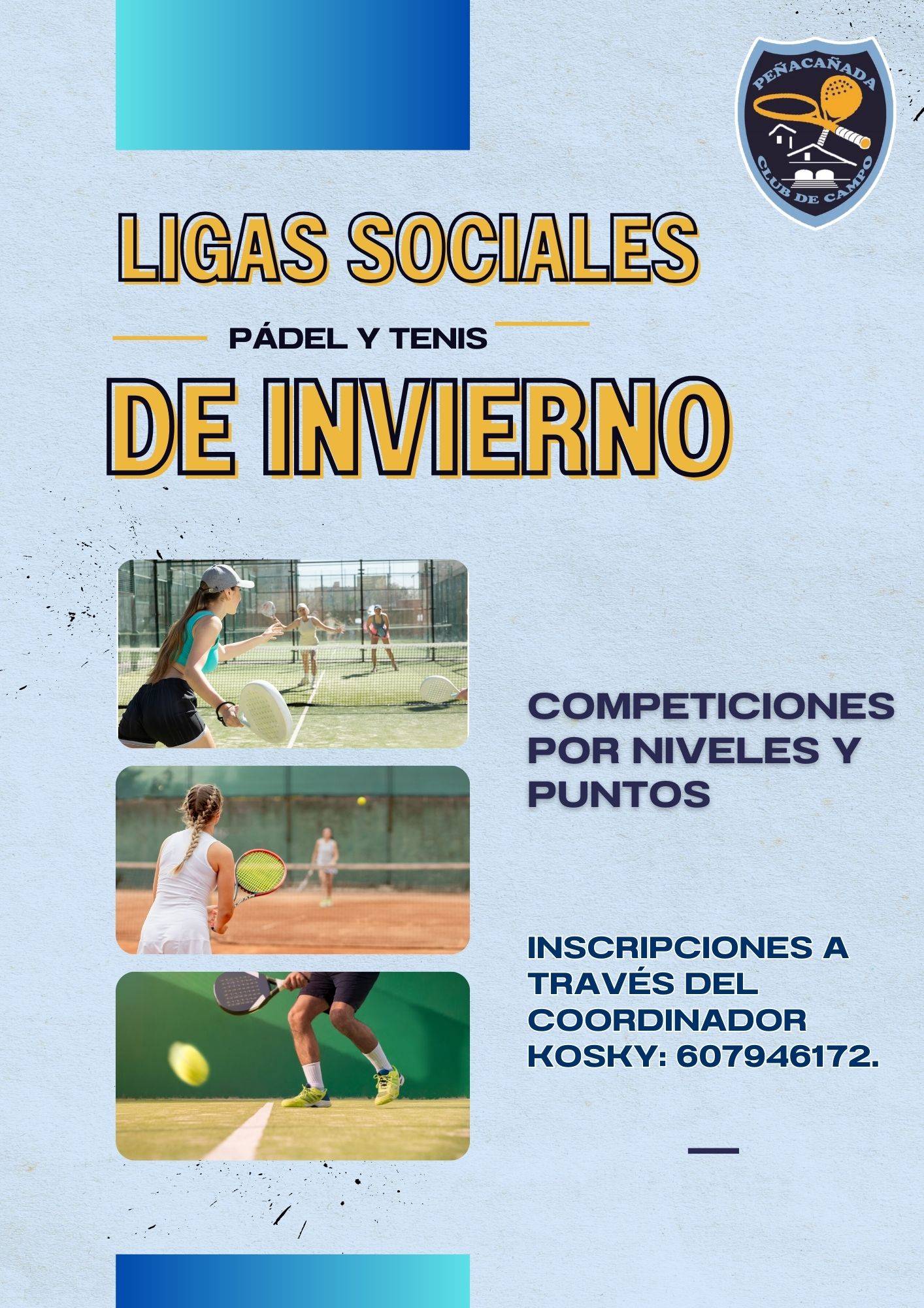 Las ligas de tenis y pádel de invierno de Peñacañada están a punto de comenzar. Así que prepara tu equipo para disfrutar de una temporada llena de competición, deporte y buen ambiente.