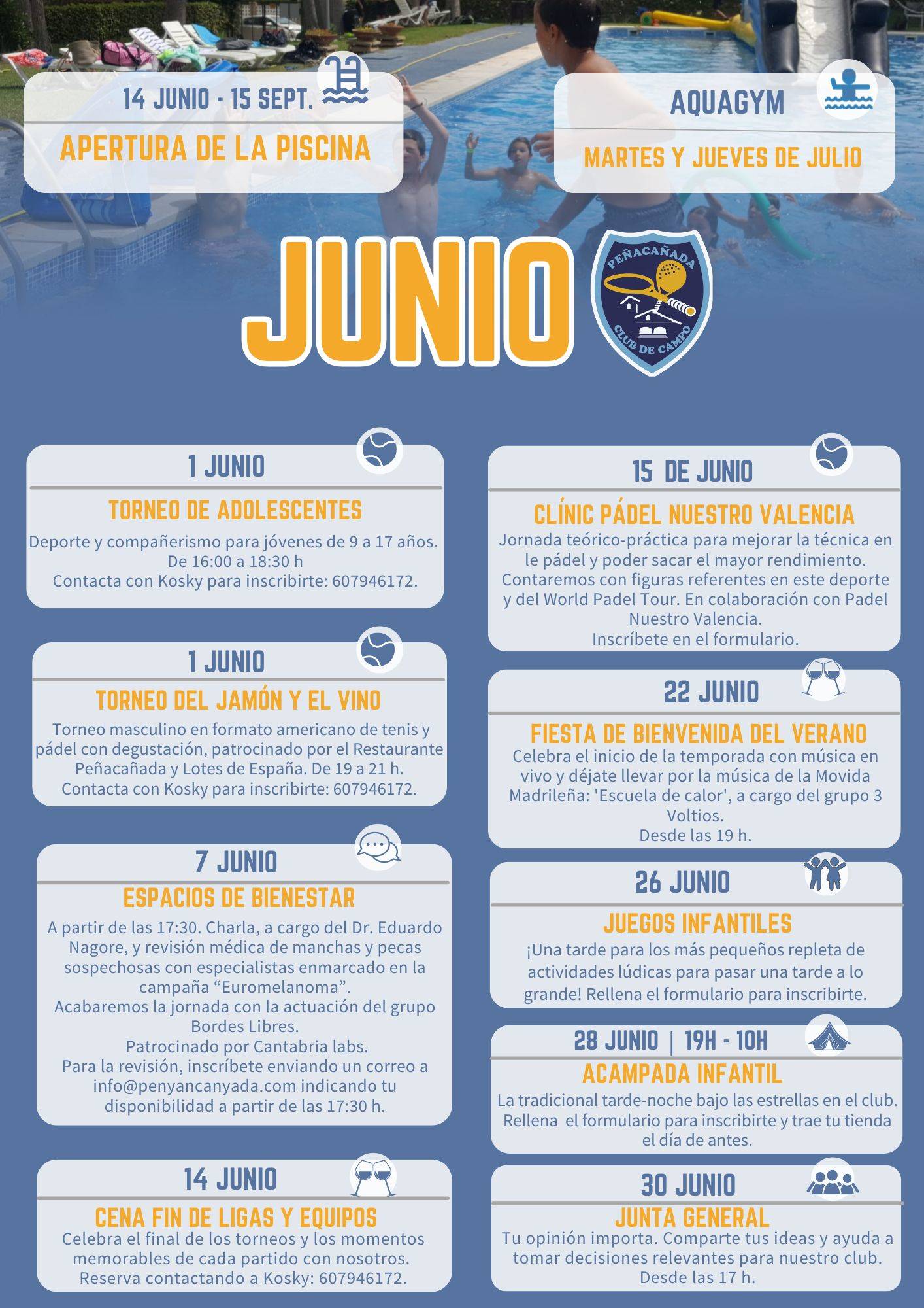 Con una agenda de lo más variada: Clínic de Pádel, competiciones sociales, Fiesta de Bienvenida del verano, o el Día del Club.