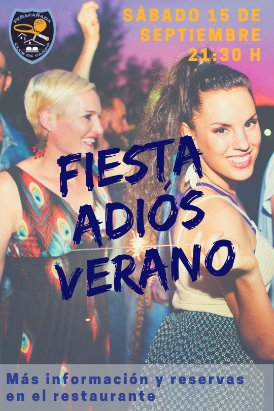 Socios, amigos, familia: ¡nos despedimos del verano!, y como viene siendo tradición, lo queremos hacer con todos vosotros en la fiesta que celebraremos en el restaurante Peñacañada Club de Campo el próximo sábado, 15 de septiembre, a partir de las 21.30h.