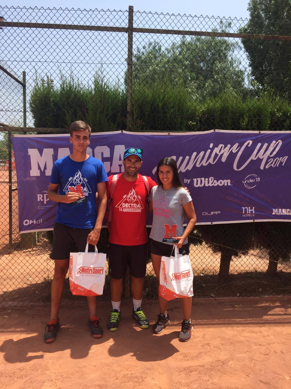 Los jugadores, Alejandro Salvador y Claudia Sánchez, finalistas del Circuito Marca Jóvenes Promesas by Wilson del C. T. Castellón, frente a Héctor Talens y Judith Perelló. ¡Enhorabuena!