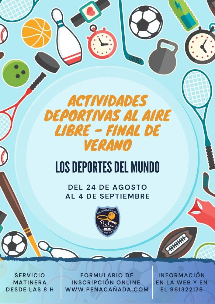 ¿Has disfrutado de las Actividades deportivas de verano en Peñacañada? Pues sigue divirtíendote, como cada año, durante más tiempo antes de empezar el cole. Inscríbete ya a las Actividades deportivas de final de verano que tendrán como lema "Los deportes del mundo". Del 24 de agosto al 4 de septiembre, lo pasaremos en grande descubriendo deportes como el Gul Tara, hockey, La Mancha o Mr Wolf.