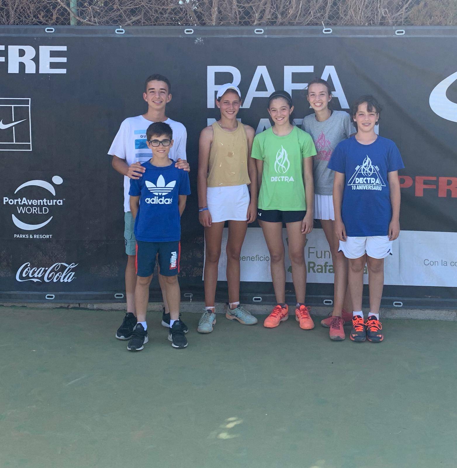 Los jugadores, Álvaro Bartomeu, Joan Mercader, Aitana Darder, Carlos Giner e Himar Acosta, disputan las últimas rondas de la fase previa del Torneo Rafa Nadal Tour del C. T. Montemar.
