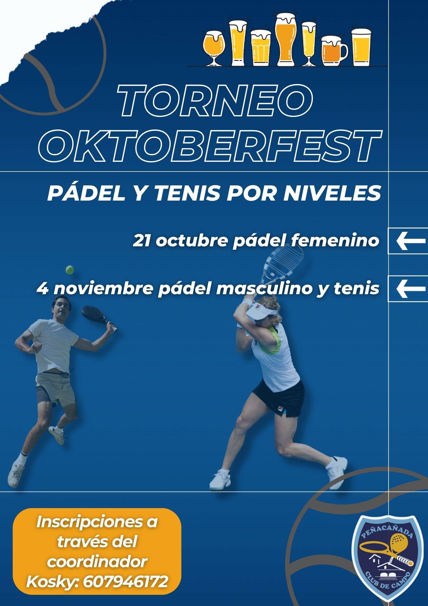 Los próximos sábado 21 de octubre y 4 de noviembre celebramos en Peñacañada el OktoberFest con un Torneo de Pádel y Tenis.