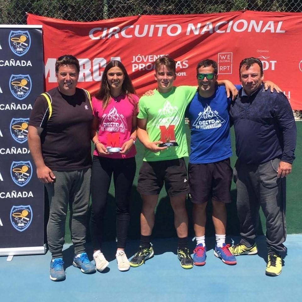 El jugador de la Escuela de Peñacañada, Dani Torres, campeón individual del torneo Marca Jóvenes Promesas by Wilson, tras vencer en la final al tercer cabeza de serie del torneo, Mario Martínez, por 6/3 6/2. Por su parte nuestra jugadora, Mar Ribera, finalista tras un gran partido frente a Lucia Martínez, por 6/2 4/6 6/0. Peñacañada quiere dar la enhorabuena a nuestros jugadores y dar las gracias a nuestros niños que colaboraron muy activamente en el torneo como recoge pelotas de la final y a toda la gente que durante esta semana ha pasado por nuestro club para disfrutar de este torneo.