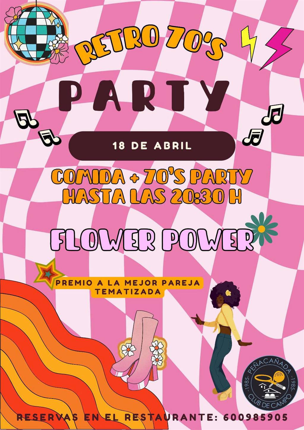 El próximo sábado 18 de abril celebramos en el Club una Fiesta de los años 70, una propuesta para disfrutar de un plan diferente en Peñacañada.