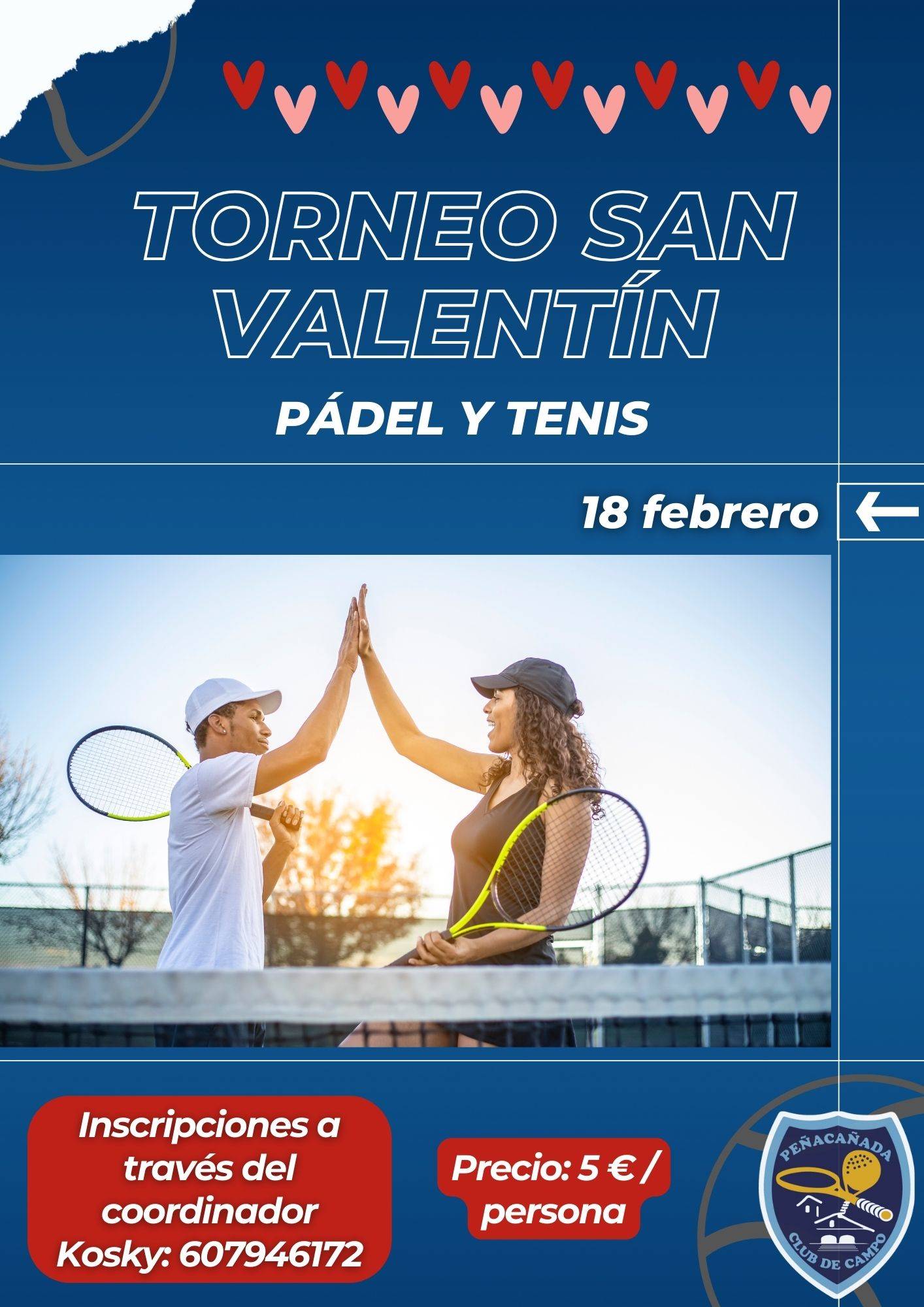El deporte también celebra San Valentín el próximo domingo 18 de febrero. En Peñacañada organizamos el Torneo de tenis y pádel, una  competición en modalidad de dobles mixto y en formato americano.