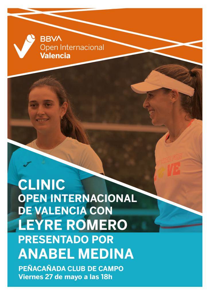Este viernes, 27 de mayo, se celebrará en Peñacañada el Clínic Open Internacional de Valencia con Leyre Romero, jugadora de nuestra escuela y presentado por la capitana de la Selección Española de Tenis, Anabel Medina.