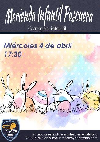 El miércoles 4 de abril os esperamos en Peñacañada a las 17:30. Prepararemos juegos para niños por edades a partir de 3 años que consistirá en una Gynkana infantil para encontrar los huevos de Pascua.